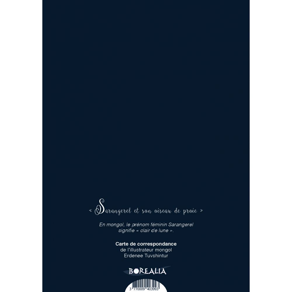 » Sarangerel et son oiseau de proie » En mongol, le prénom féminin Sarangerel signifie » clair de lune ».