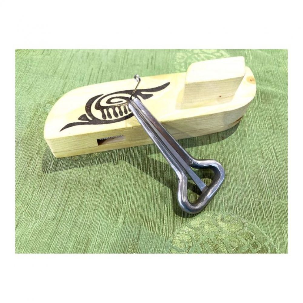 Fabriquée en septembre 2024 par Adyrna SHEBERKHANASY, facteur d’instruments à Astana, la capitale. Adyrna fabrique surtout des guimbardes (shan-kobyz) et des instruments à corde(dombra, kobyz) pour les grands ensembles de musique du Kazakhstan.